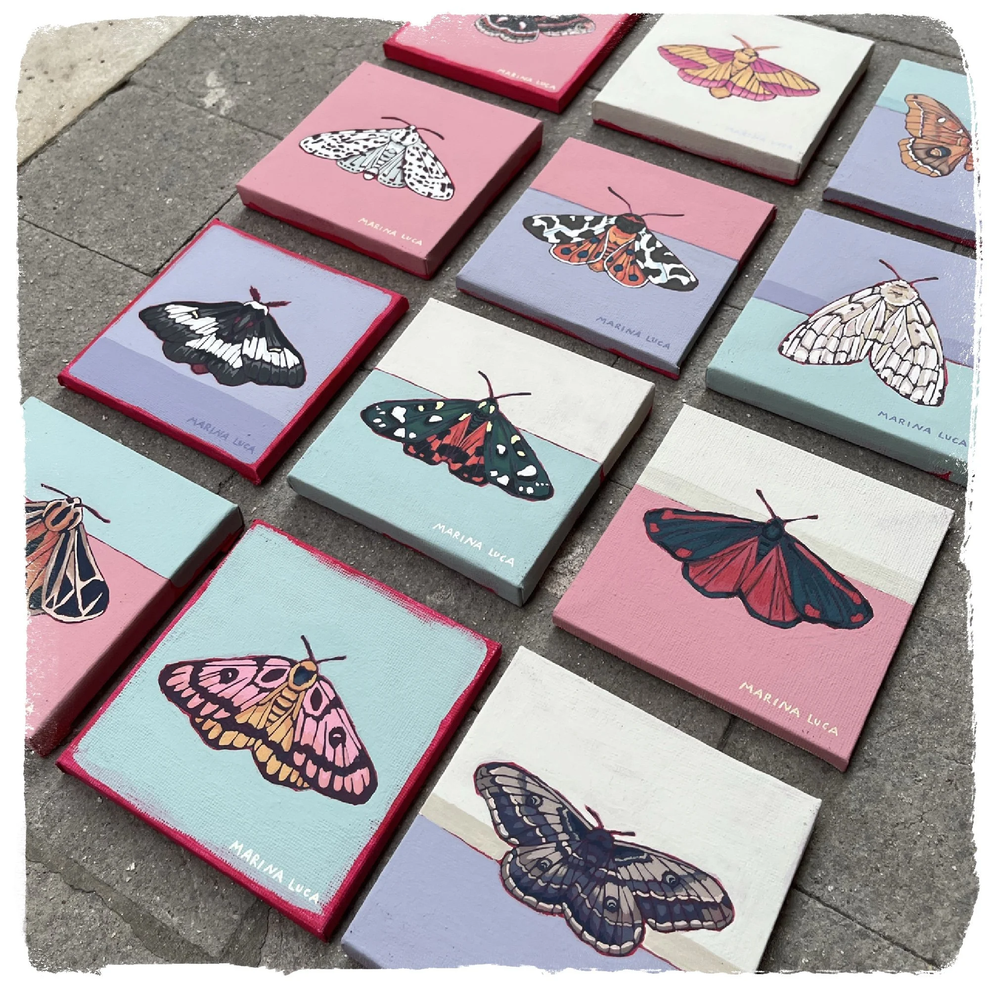 A Garden Tiger moth, 5/12 of 'a dozen moths' series. Painted using acrylics and lime wash.